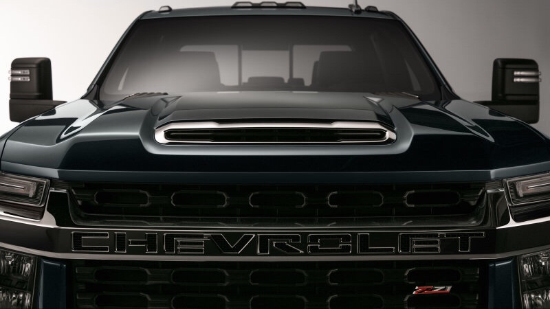 When taking a look at the image, we see the 2020 Silverado HD will forego a bow tie badge and instead feature text that spells out “Chevrolet” across the grille bar. The truck will also accept the 2019 Silverado 1500’s headlight treatment that has a split and sculpted design. Angular LED lights seem to sit on top, and traditional headlights will sit below the grille bar. Additionally, the teaser image shows a massive hood scoop, which leads us to speculate it’s for the Duramax diesel V-8 or the gasoline V-8 engines.