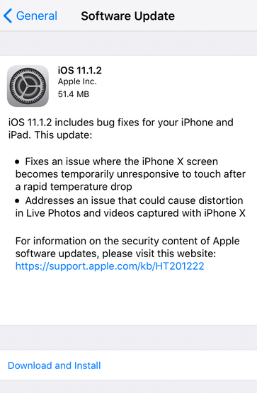 Apple has released iOS 11.1.2 that addresses a few issues with the iPhone X. The new updates fixes an issue where screens on the iPhone X devices would become unresponsive due to cold weather. Affected users reported that their iPhone X displays kept freezing up when taking the phone into cold environments. The phone would go back to operating normally after a few seconds.