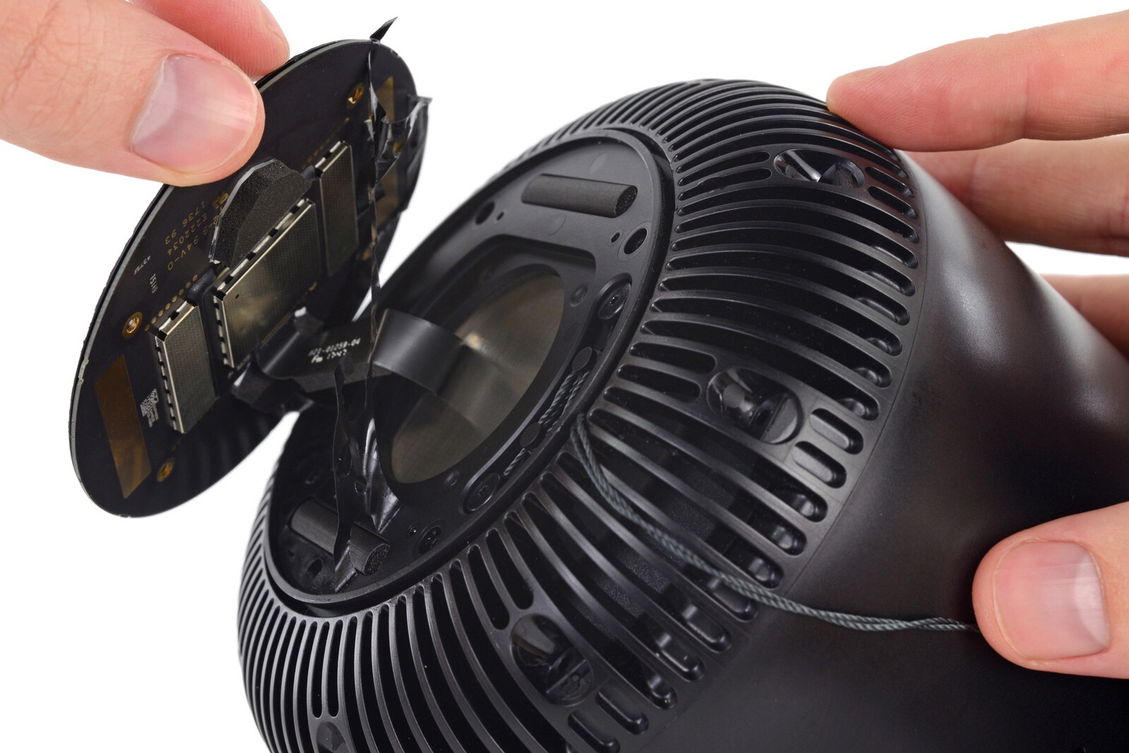 Our friends over at iFixit did a teardown of Apple’s HomePod that revealed a clever design that makes good use of tiny space, but it comes at a cost because everything is so tightly packed. It appears that you can pull the fabric mesh off with a drawstring, but everything else on the device will require tearing things apart (even if they aren’t broken).