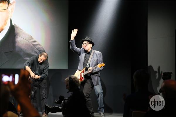11:10 am | Musician coming on stage, three decades of work, 29 albums. Elvis Costello.