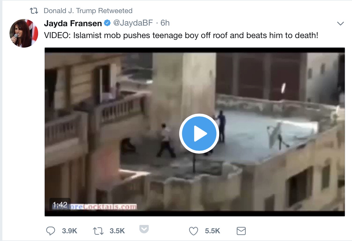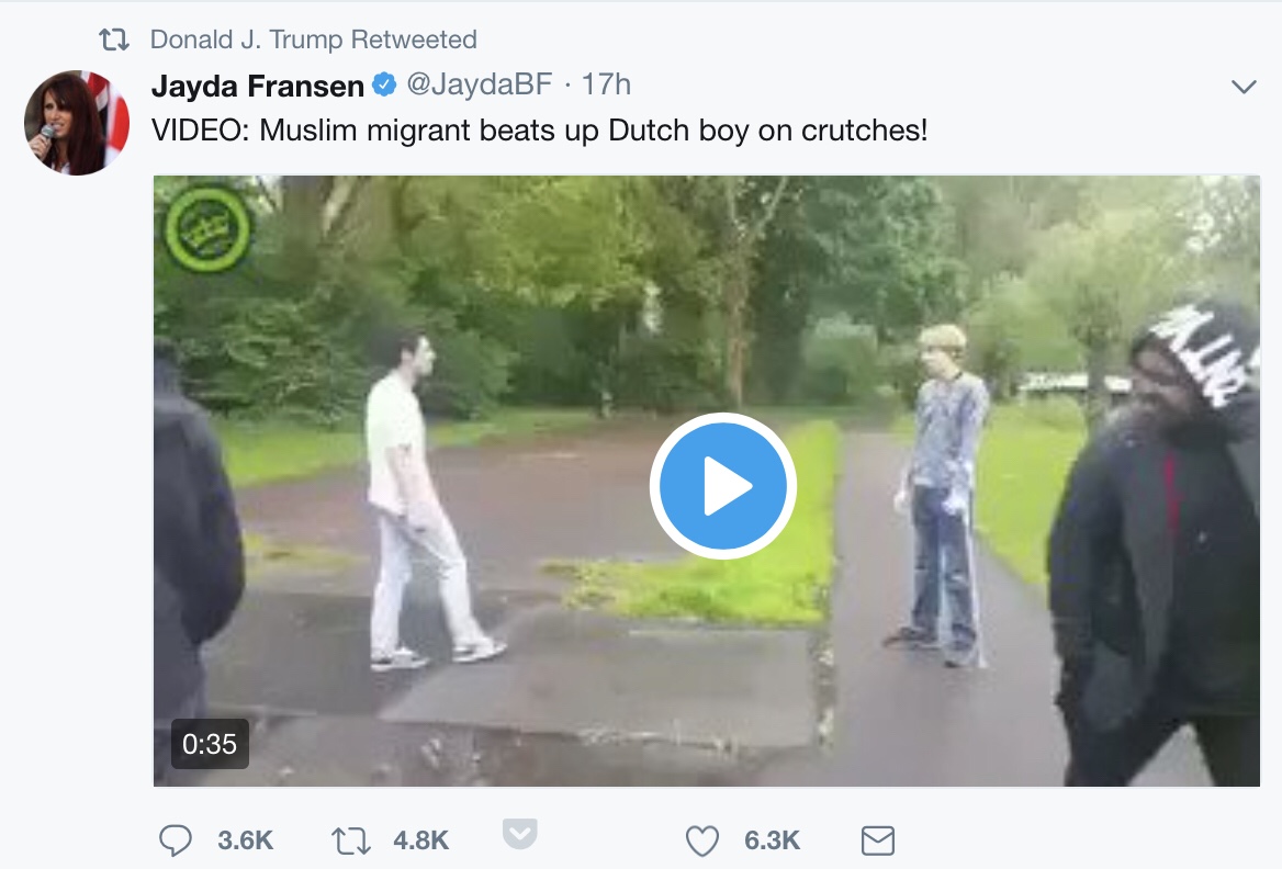 If you don’t know about Britain First, they’re the organization behind three anti-Muslim tweets that were retweeted by President Trump (pictured below). When this went viral, Twitter suspended the Britain First account, and two months later, President offered a questionable apology for his actions.