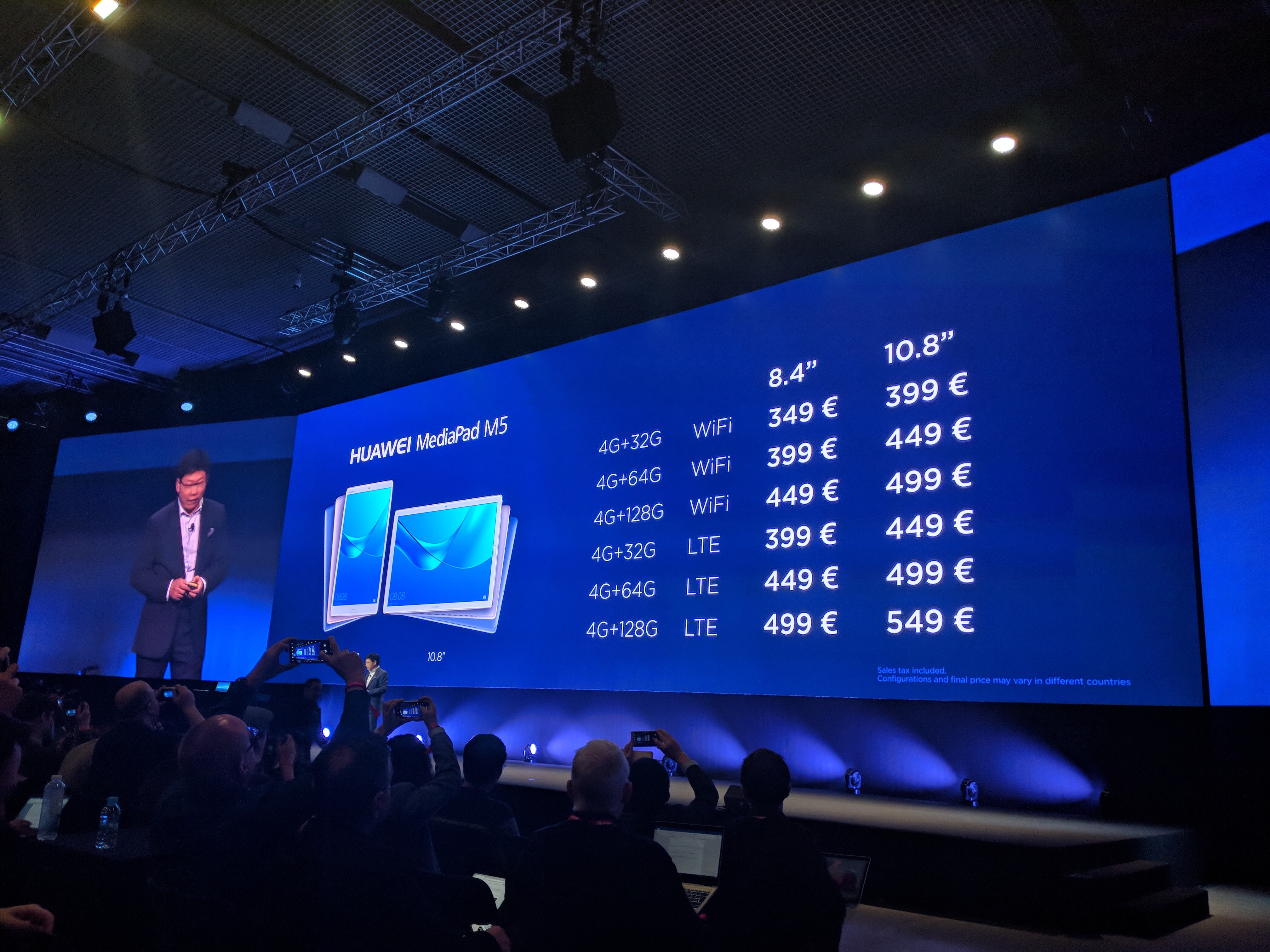 While these features are nice and all, what’re the prices? Take a look at the image above. Seeing as MediaPad M5 is aimed at being a kind of premium tablet, you might expect the price to reflect that. The tablet may not be a speed demon by any means with the Kirin 960 octa-core chip, but it comes with a beautiful design and solid specs.