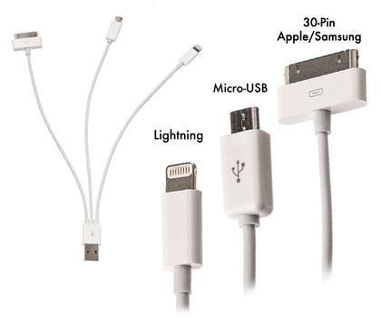 Today’s Offer: 4-in-1 USB Cable with 8-Pin Lightning, 30-Pin Apple, 30-Pin Samsung and Micro-USB Connectors – Simultaneously Charge/Sync Your Mobile Devices with One Cable!