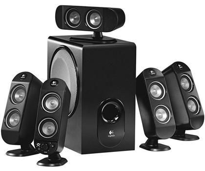 - Plug the Logitech X-530 into your PC, music player, DVD player, or even your PlayStation® or Xbox® game console and immerse yourself in clean, crisp, consistent surround sound from your games, movies, and more. The high-tech subwoofer adjusts itself dynamically to deliver distortion-free bass. And the five wall-mountable satellite speakers use Logitech´s patented FDD2 technology to eliminate the uneven sound response created by conventional dual-driver designs. The result: a clear, uniform sound field without the “hot spots” and inconsistency of other dual-driver satellites. Frequency Directed Dual Driver (FDD2) satellite technology produces a uniform sound field for full, rich sound Matching front & rear satellites deliver balanced surround sound Dedicated center channel makes dialogue clear and intelligible. Dynamic, real-time bass equalization maximizes bass response while minimizing distortion Ported subwoofer design displaces more air for deeper bass Headphone jack enables private listening Master volume and subwoofer level controls placed for quick, convenient access Satellite speaker stands rotate for easy wall mounting