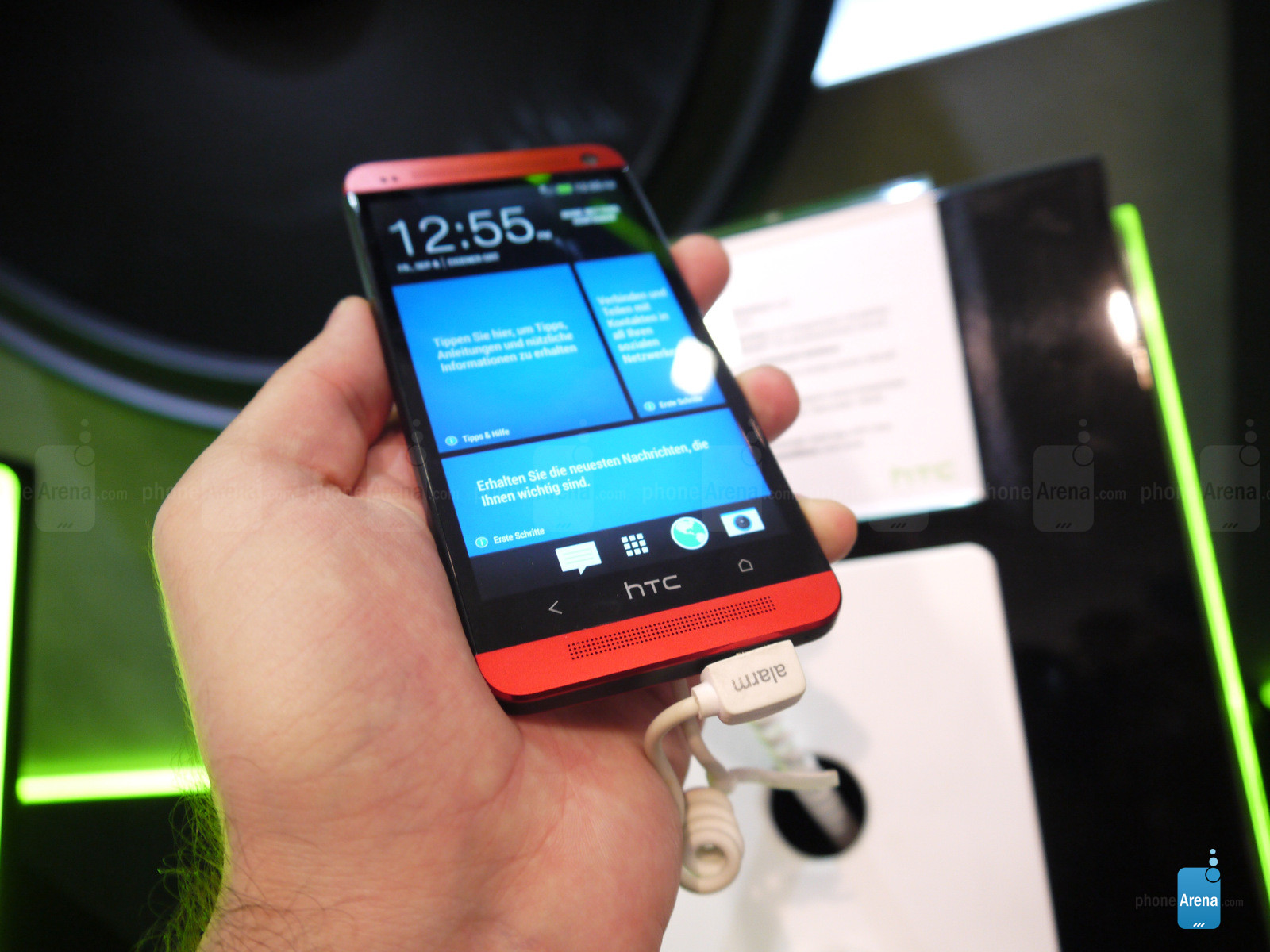 At IFA 2013, in the HTC booth, we see two different colored HTC One’s on display. The first color we see is the red edition, and the second color we see is the blue edition. While the two different colors of the phone are very attractive, the internals are very much the same.