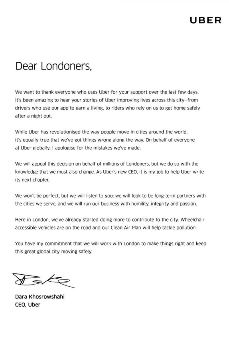 “While Uber has revolutionised the way people move in cities around the world, it’s equally true that we’ve got things wrong along the way. On behalf of everyone at Uber globally, I apologise for the mistakes we’ve made,” Khosrowshahi wrote.