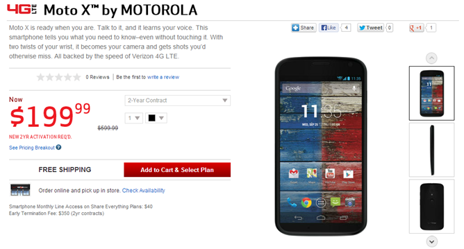Previously, we reported to you that Verizon would start carrying the Moto X very soon. The sign up page had gone live on August 12, and now starting today, Verizon is officially making the Moto X available to all of its customers.